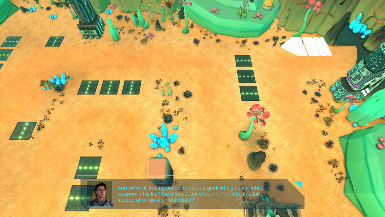 The story is revealed through dialogues with several non-player characters as the player progresses through action-packed tower defense battles.