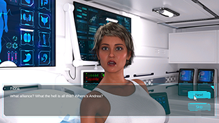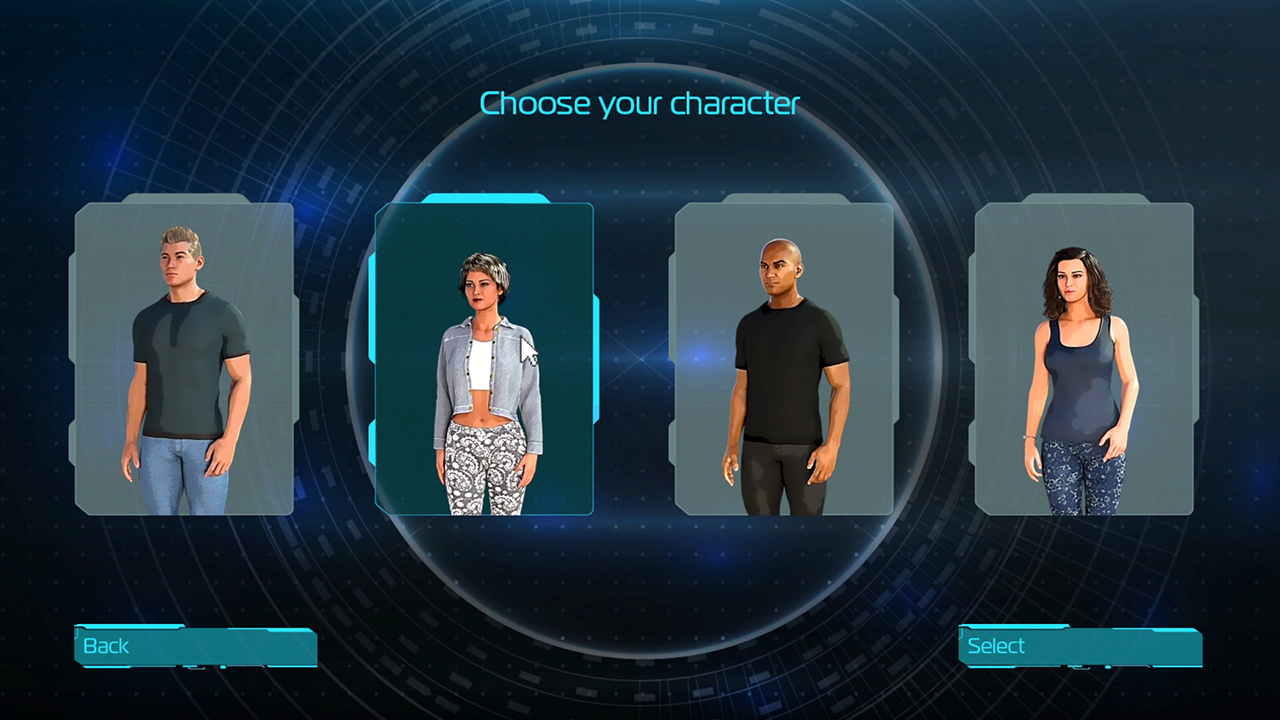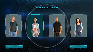 The player can choose between four different avatars. An on-screen keyboard allows the player to name their avatar. Avatars are used in dialogue scenes.